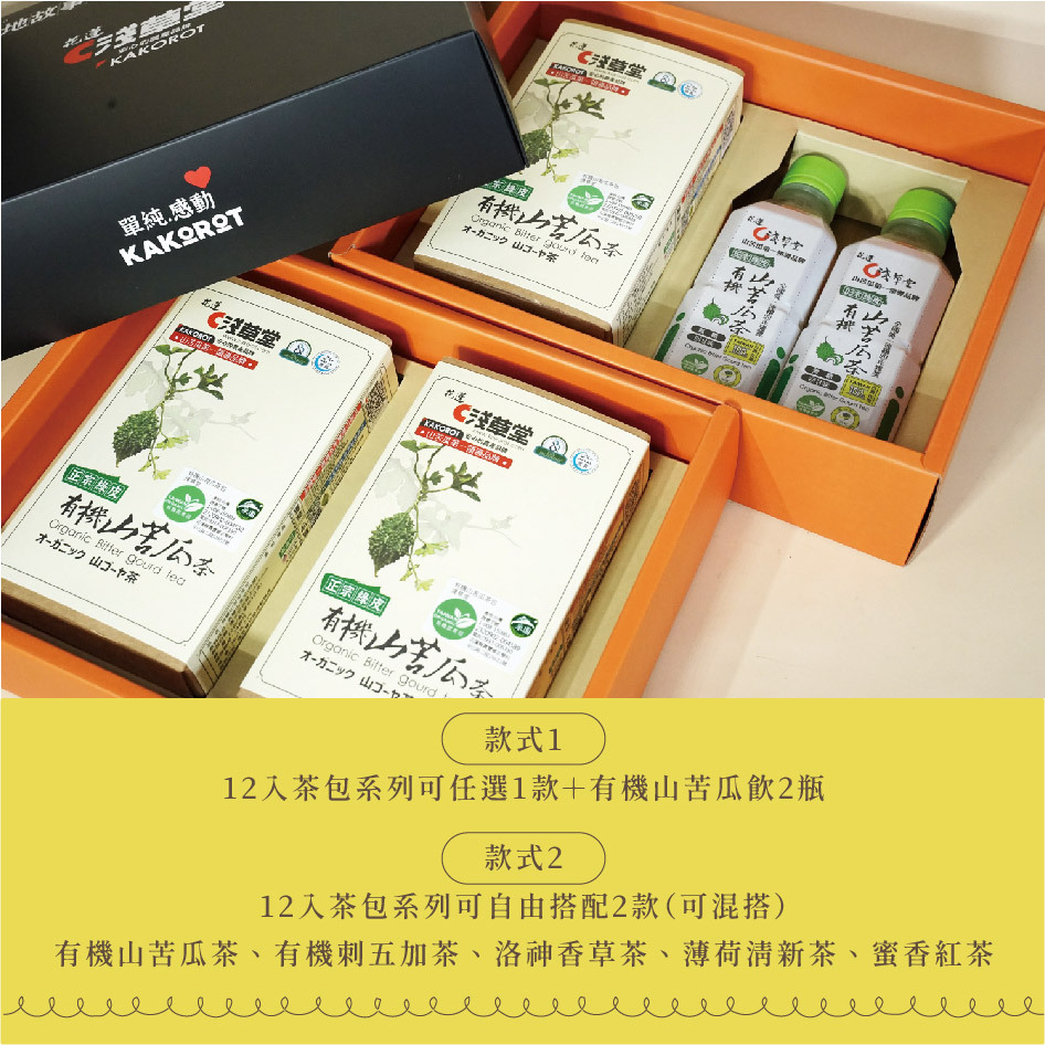✦「飲料款」任一12入茶包系列1款+2瓶有機山苦飲料