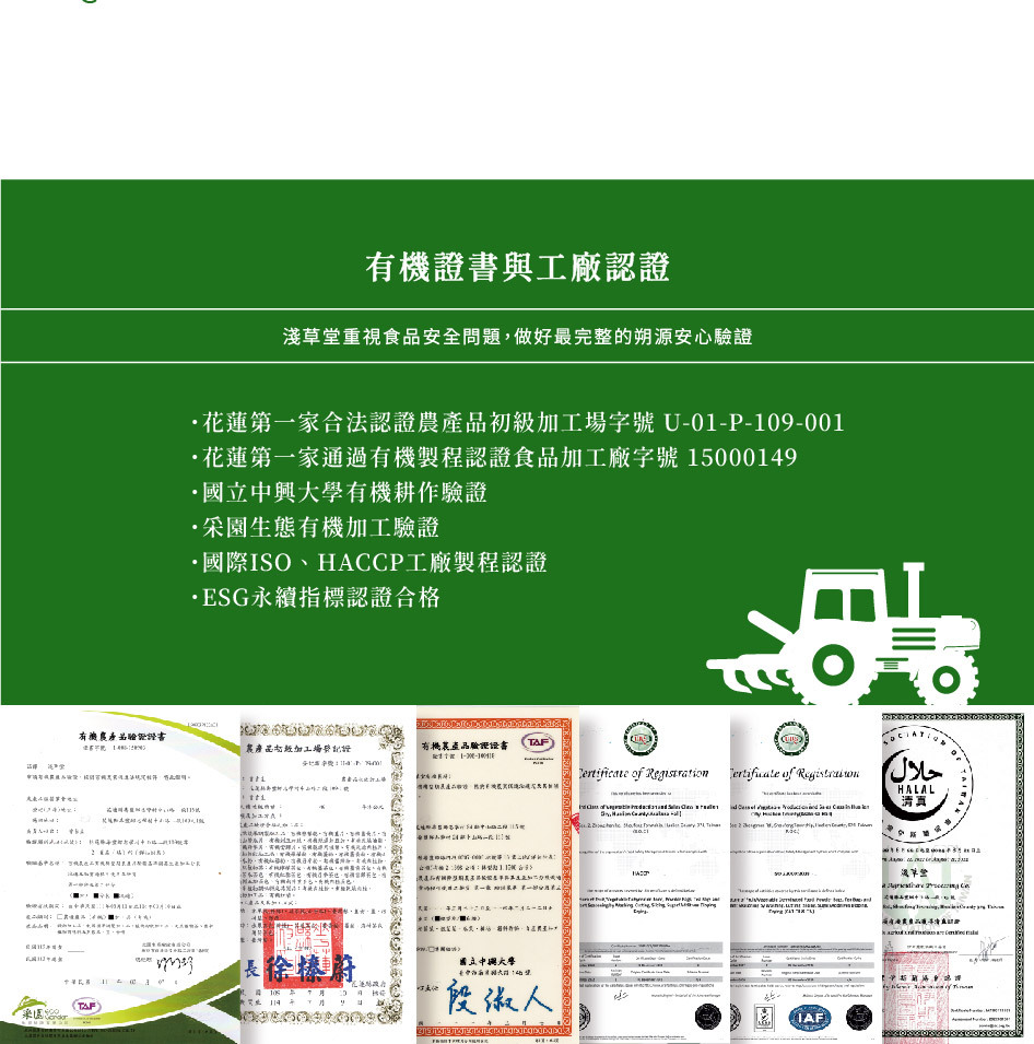 ✦全臺第一家同時擁有全有機農產品初級加工場、全有機食品加工廠