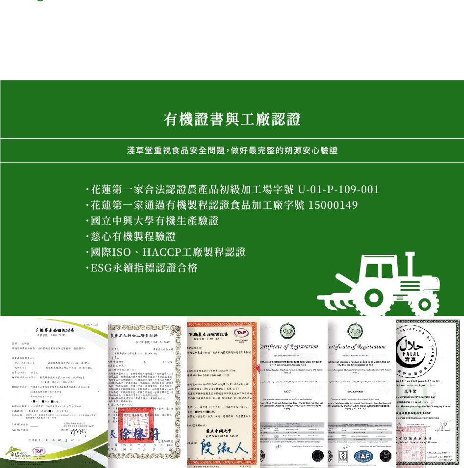 ✦全臺第一家同時擁有全有機農產品初級加工場、全有機食品加工廠