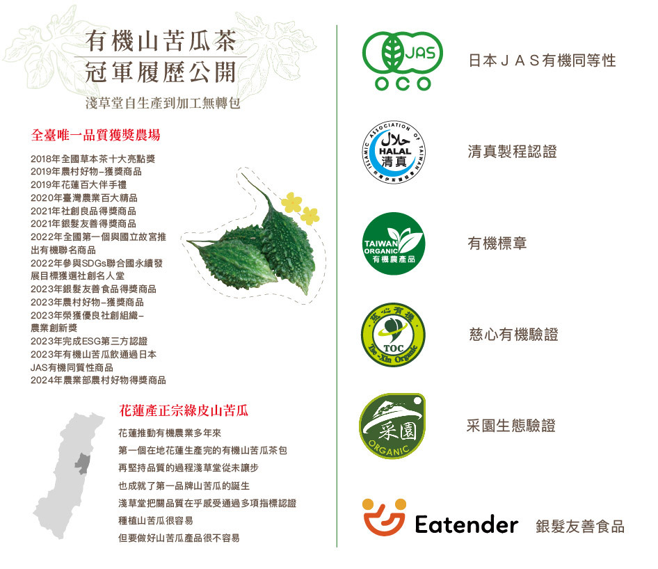 ✦淺草堂於花蓮壽豐鄉東華有機專區自行生產正宗綠皮山苦瓜